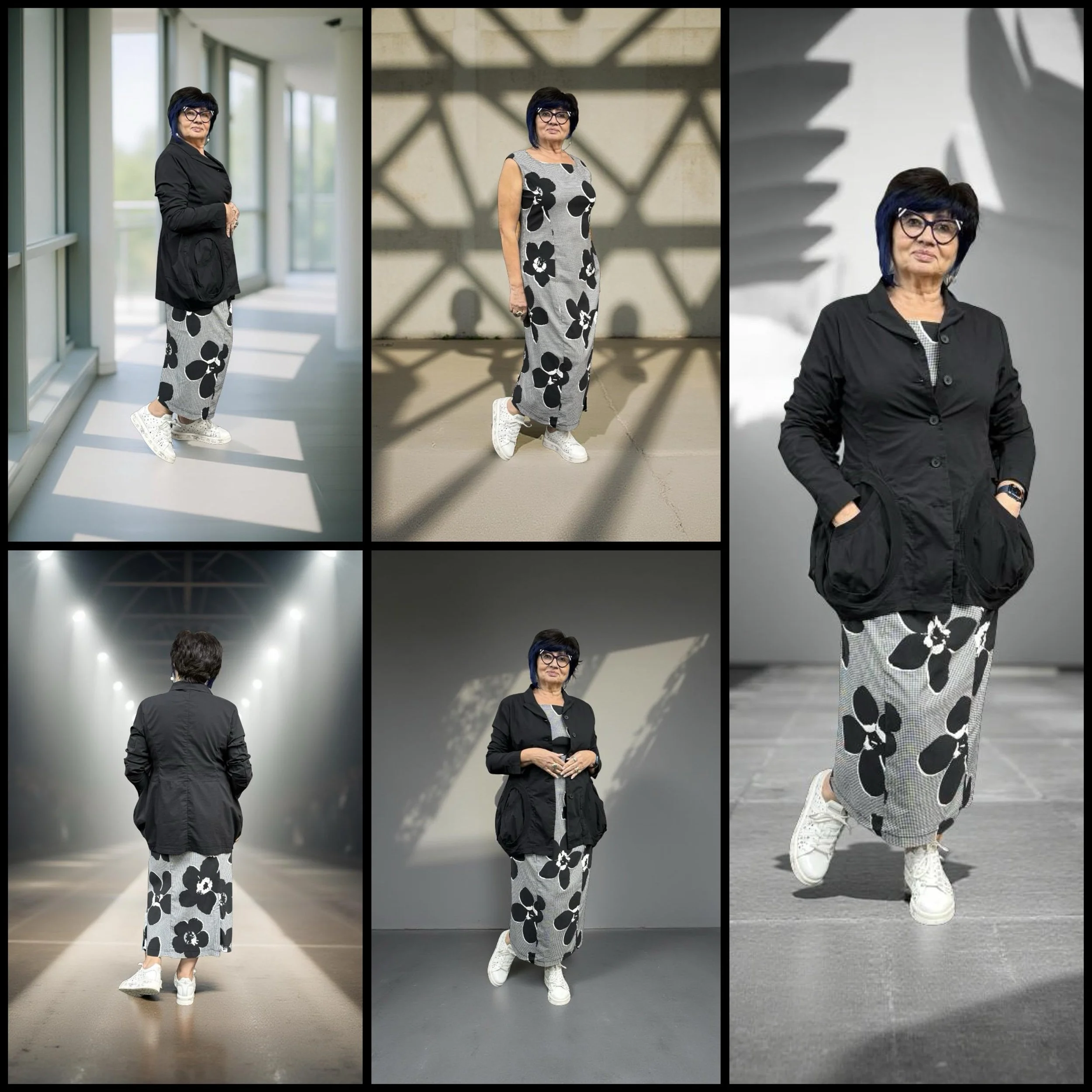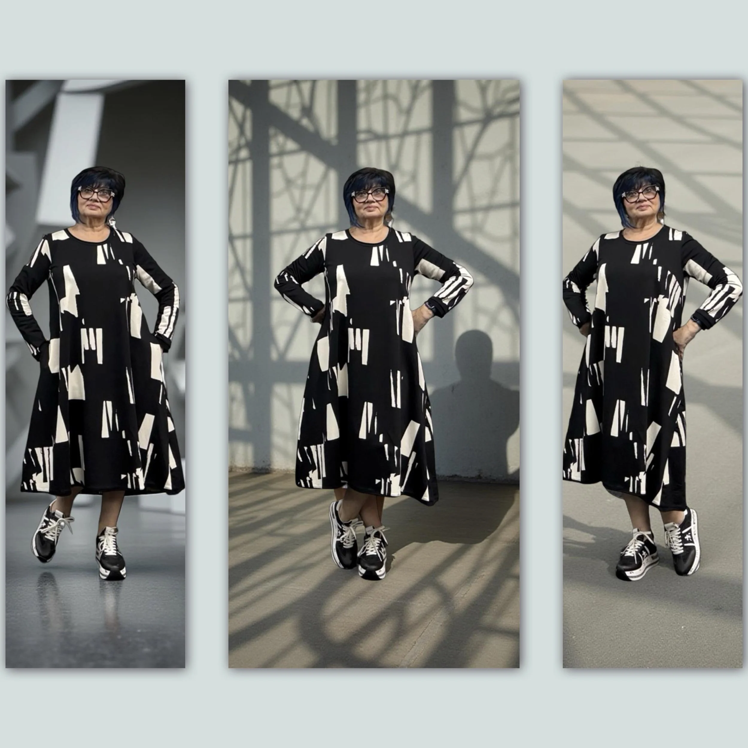 Koza Alessandra dress 1289 in monochrome black and white check .