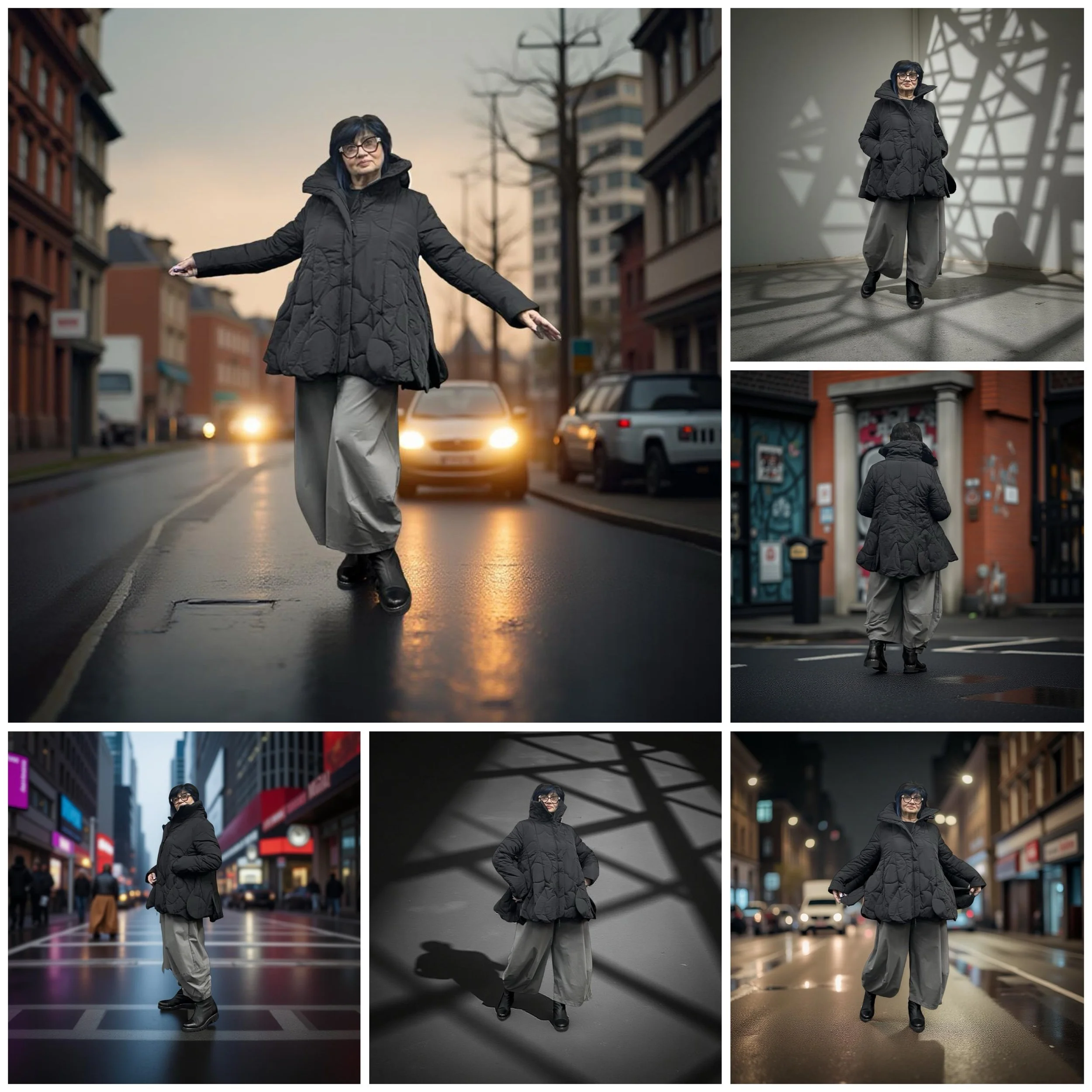 Dress 1466, pants 911, black top 4084 and black jacket 2758
